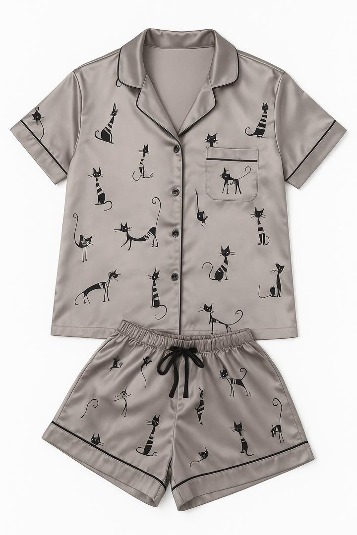 ست پیراهن جلو دکمه دار و شلوارک زنانه ساتن امریکایی اعلا
