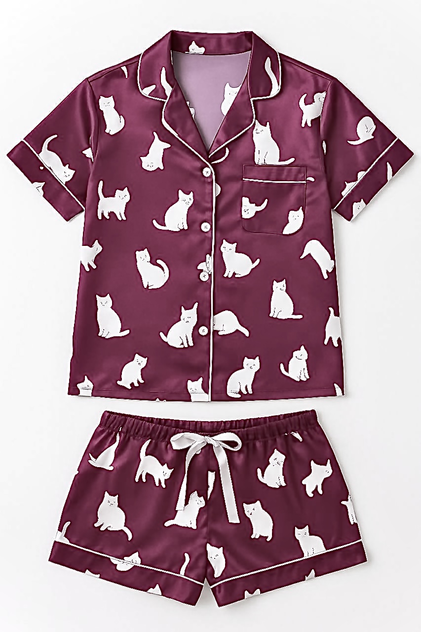 ست پیراهن جلو دکمه دار و شلوارک زنانه ساتن امریکایی